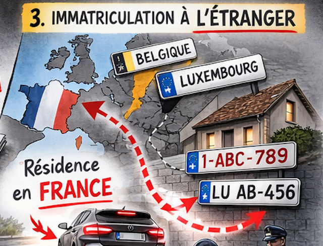 Certains font immatriculer le véhicule en Belgique, au Luxembourg ou ailleurs, tout en résidant en France et en utilisant le véhicule principalement sur le territoire français.