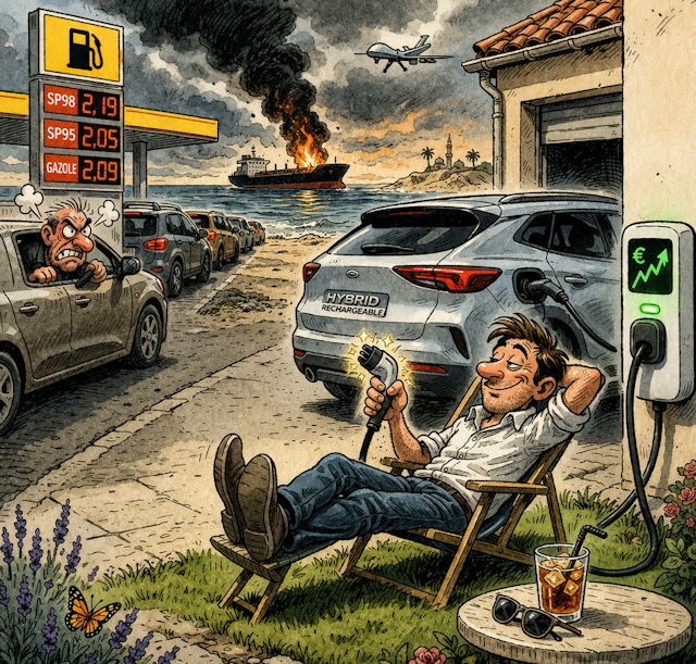 Il a une hybride rechargeable. Il en parle souvent. Surtout au début. Les 1.2 L/100 km, les “trajets du quotidien en électrique”, le côté malin, presque visionnaire. Il a même vaguement expliqué à deux ou trois personnes comment ça marchait.