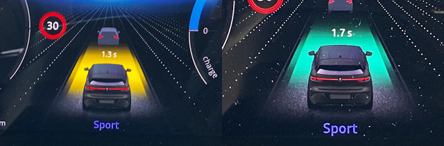 Alerte de distance de sécurité : un indicateur vous prévient de la trop grande proximité avec votre poursuivant.