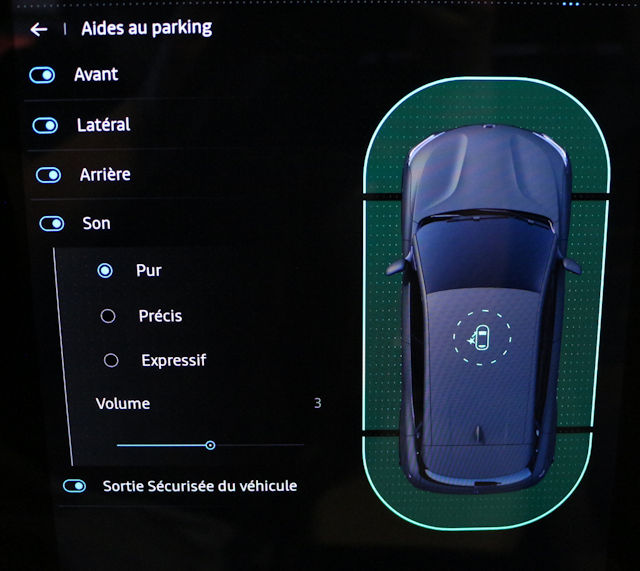 Vision périmétrique / Area view : Contrôle de l'environnement à 360° grâce à quatre caméras, utile pour le pilote automatique et l'affichage sur l'écran des véhicules vous entourant (cela va donc au delà d'une visualisation à 360 degrés pour le stationnement).