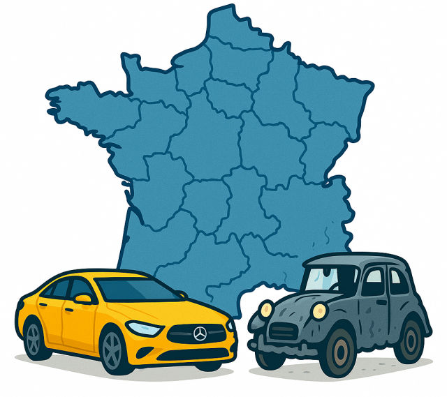 L'Auvergne–Rhône-Alpes apporte un autre cas de figure. La région est plus aisée, mais le parc reste plus âgé parce qu'il mélange des modèles premium gardés longtemps et des voitures robustes destinées aux zones de montagne. Les conducteurs investissent souvent dans des véhicules faits pour tenir, et ces choix prolongent la durée d'usage avant revente.
