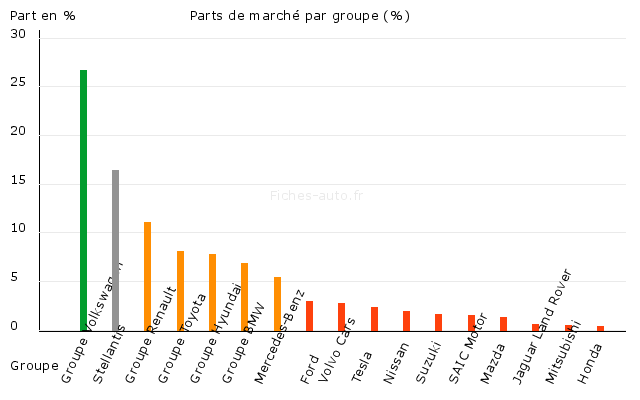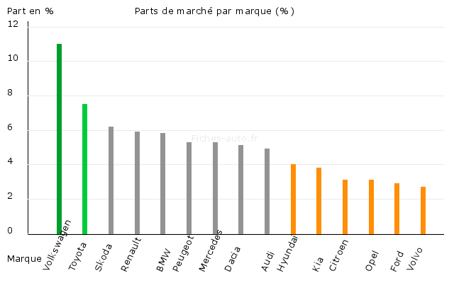 Les données proviennent de l'ACEA et permettent d'avoir une vision claire des parts de marché cumulées sur l'année entière. Rien de plus concret.