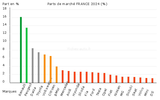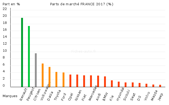 Voici le classement des marques qui ont le plus de parts de marché en France, vous pourrez retrouver plus bas le détail des chiffres ainsi que les marques absentes de ce graphique dont les chiffres sont très faibles.