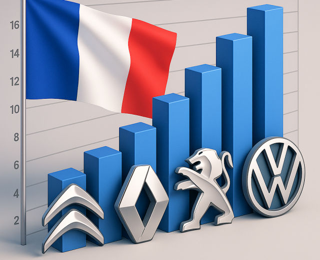 Renault et Peugeot restent les deux piliers du marché, mais leur poids s’effrite. Renault passe d’environ 19,7 % de part de marché à 16,1 %, tandis que Peugeot glisse de 17,4 % à 13,5 %. Citroen suit la même tendance, avec une chute de 9,5 % à 6,5 %. Le trio français domine toujours, mais avec beaucoup moins d’écart qu’avant sur le reste du marché.