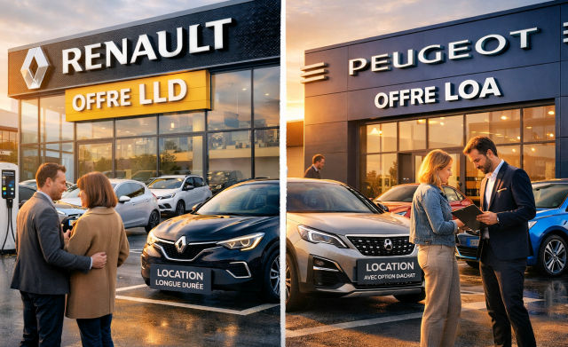 Quand on commence à comparer les offres de financement automobile, un détail finit par sauter aux yeux. Selon les marques, on ne nous propose pas les mêmes solutions. Chez certaines, la LLD est partout. Chez d'autres, la LOA semble être la norme, presque la seule option mise en avant. Par exemple, Renault favorise largement la LLD tandis que Stellantis pousse davantage la LOA si vous observez attentivement les configurateurs en ligne.