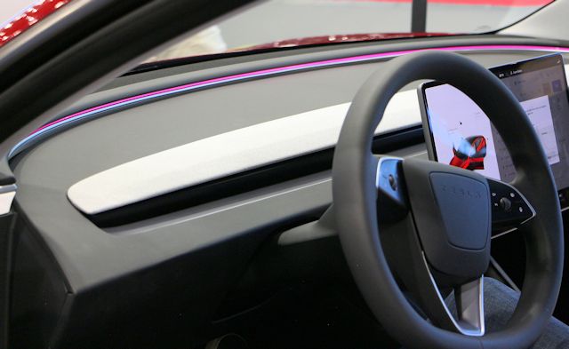 L'intérieur est encore plus sommaire que par le passé (et pourtant on partait déjà sur une base assez vide), perdant ses inserts en bois et offrant des contre-portes et une planche de bord plus dépouillées (même le volant perd le logo "métallique" !). Cela contraste avec les améliorations apportées aux versions précédentes de la Model 3, où les plastiques de piètre qualité avaient été remplacés (je parle des plastiques durs et fragiles des parties basses, mises au rebut aux alentours de 2022). La console centrale présente aussi un design moins raffiné, avec davantage d'angles et moins de finitions chromées. La phase 2 de la Model 3 V1 est donc supérieure à ce niveau bien que l'écart soit mince je vous l'accorde.