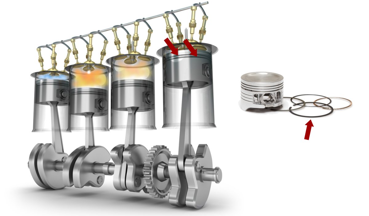 Dans un moteur, on distingue le segment de feu, le segment d'étanchéité et le