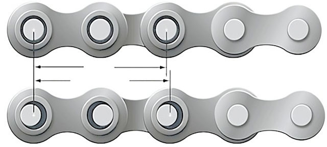 Un phénomène souvent méconnu est l'allongement naturel des chaînes au fil du temps. Contrairement à une croyance populaire, les chaînes ne restent pas statiques mais subissent une expansion graduelle due à l'usure des maillons. Ce processus, bien que lent, peut entraîner une perte de tension et des décalages, compromettant ainsi le bon fonctionnement du moteur. L'accumulation de jeu dans les liaisons des maillons et l'usure métallique contribuent à cet allongement progressif, sapant ainsi la fiabilité des distributions à chaîne. SI cette usure est trop prononcée, cela peut mener à la rupture pure te simple de la chaîne.