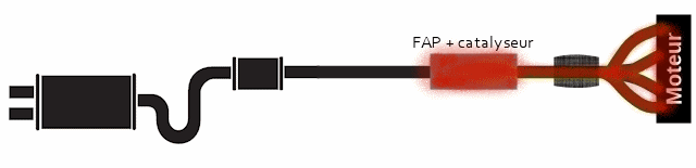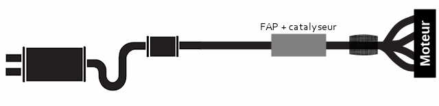 Ici, catalyseur en amont, FAP épaulé par un SCR pour réduire les NO