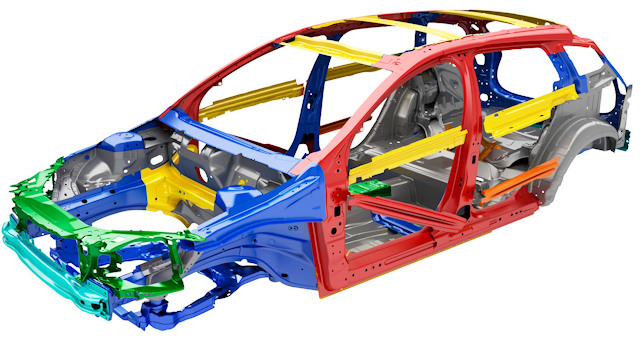 Le principal avantage est de pouvoir fabriquer une sorte de cage homogène (la rigidité est donc répartie sur l'ensemble de la caisse et non pas principalement sur le châssis situé dans le soubassement) dont on va pouvoir contrôler la déformation en cas de choc. Certaines zones sont très solides pour avoir un châssis rigide et d'autres sont volontairement fragiles pour orienter la déformation (des glissières prévoient même de faire passer le moteur sous la voiture pour ne pas qu'il finisse dans vos jambes. Cela est d'autant plus facile grâce à la CAO (conception assistée par ordinateur) qui permet de les simuler sur un écran, et donc de peaufiner la structure sans avoir à effectuer des crash tests (qui seront tout de même effectués par la suite pour vérification).