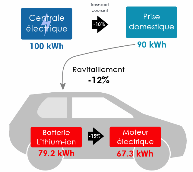 Nos 100 kWh perdent donc ici 10kWh (10%), nous tombons alors à 90 kWh.