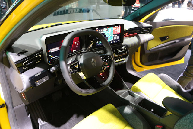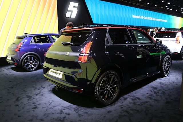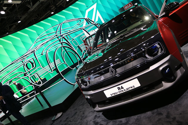 Au delà de la R5 qui attirait les foules et qui prenait le plus de place avec une multitudes de déclinaisons, il y avait en plus la présentation de la R4, à savoir la "résurrection" de la 4L. Une version XXL en fils luminaissants trônait d'ailleurs sur le stand pour bien indiquer que c'était elle la star. Il s'agit d'un modèle identique de la R5 mais avec une nouvelle carrosserie et une envergure un peu plus grande pour proposer plus d'espace et de polyvalence. Si elle avait été annoncée comme étant un SUV chic, il n'en est finalement rien, c'est une sorte de Clio électrique qui vient compléter la gamme de la R5. Elle se situe donc entre les R5 et Mégane E-Tech. On peut donc aussi imaginer qu'elle remplacera la Clio à terme ... Clio qui reste toutefois 9 cm inférieure en ce qui concerne la longueur.