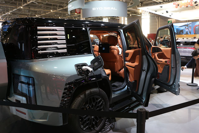 La marque vous accueillait en rappelant qu'elle était la première et seule marque au monde à proposer des solutions hybrides et électriques pour tout ce qui roule, de la voiture individuelle jusqu'au train en passant par les tracteurs, camions et bus, sans compter les nacelles de type téléphérique ... C'est au passage le septième constructeur mondial qui a réussi l'exploit d'être le premier vendeur de voitures électriques en 2023. Un petit robot pouvait aussi interagir avec vous bien que pour ma part il n'ait passé son temps à remuer les bras sans me sortir la moindre syllabe (peut-être avait-il été mis en mode "mute").