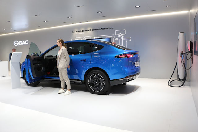 Skyworth est une marque connue à l'origine pour ses produits électroniques, notamment les téléviseurs. Plus récemment, elle s'est lancée dans l'industrie automobile, en se concentrant sur la production de véhicules électriques. Le stand proposait un concept spectaculaire et fidèle à 99.9% à ce qu'il sera en grande série, avec un intérieur et des prestations que les plus grandes allemandes, la fameuse Y. Malgré son intérieur qui fait penser à un concept et des portes antagonistes qui semblent peu propices à la série, j'ai vite été calmé par le directeur Europe qui m'a dit que c'était bien une version de série que je voyais (en émettant mes doutes il a voulu définitivement me convaincre en me rappelant son poste ... J'ai donc vite fermé mon clapet !).