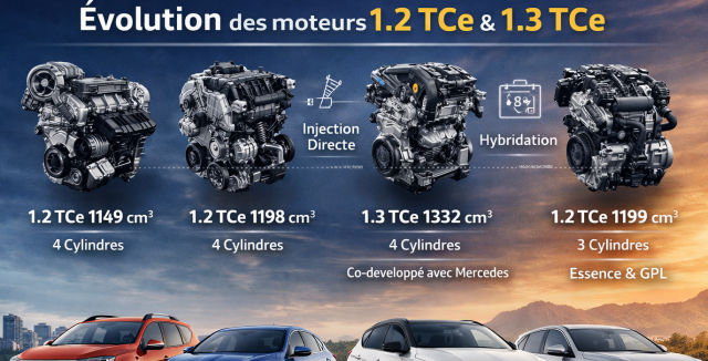 Depuis une quinzaine d’années, Renault a utilisé les appellations 1.2 TCe et 1.3 TCe sur plusieurs générations de moteurs profondément différentes. 4 cylindres, puis 4 cylindres nouvelle génération, puis 1.3 développé avec Mercedes, puis retour au 1.2 mais en 3 cylindres avec hybridation légère et version GPL…