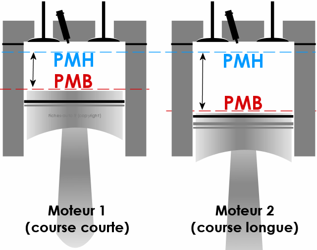 La course représente la distance entre le PMH et le PMB (points morts haut et bas). Il est plus facile et rapide de faire des allers-retours de 20 cm que de 50 cm ...
