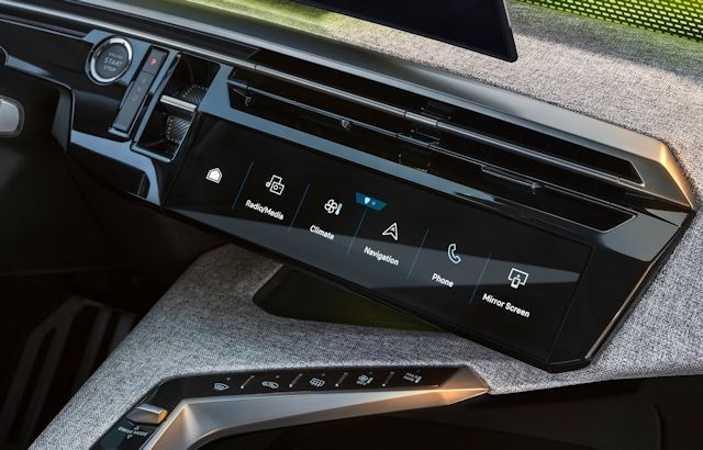 À l'intérieur, le Peugeot 5008 offre un habitacle qui cherche à en mettre plein la vue mais sans arriver à être à la pointe de la technologie ni même à être le plus pratique. Commençons avec le Panoramic i-Cockpit marketé aux petits oignons, comprenant une dalle numérique incurvée de 21 pouces en option (ou deux écrans de 10 pouces), rappelant la mode de la fin des années 2010 et qui est désormais révolue et obsolète (mais il semble que Stellantis ait toujours un train de retard à vouloir copié la concurrence. Mais c'est le prix à payer quand on est ni créatif ni ambitieux). On est en effet passé depuis bel durette à des écrans de type 4:3 et de grande envergure. La version haut de gamme GT est équipée d'une navigation connectée TomTom (aïe ... On est loin d'un Google Map) avec fonction "road planner" pour les trajets en électrique, ainsi que d'une reconnaissance vocale "OK Peugeot" (qui rappelle "Ok Google" ...).