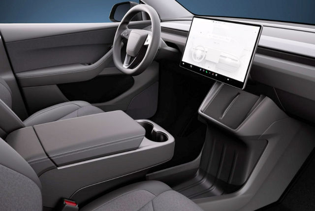 Tesla a allégé la présentation sans tomber dans le cheap. L’habitacle mélange textile, vinyle et plastique dur, avec une ambiance plus sobre mais encore soignée.