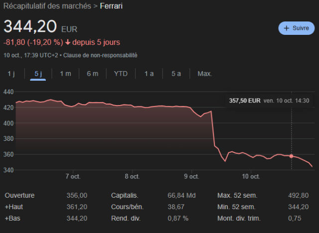 L’action Ferrari a décroché de plus de 14 % à Milan, presque au même moment que la présentation de sa plateforme électrique. Coïncidence ou signe d’un malaise plus profond ? Difficile à dire. Mais le timing laisse penser que le marché n’a pas aimé ce qu’il a vu.