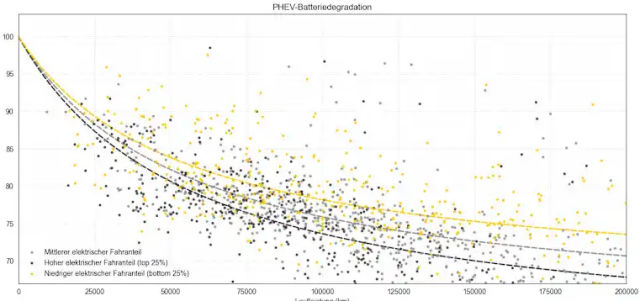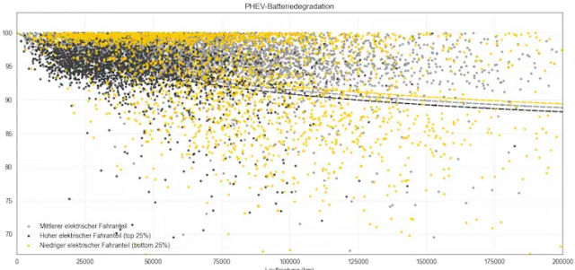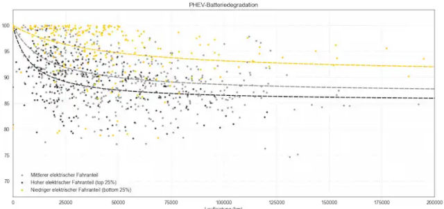 L'étude montre que les batteries de PHEV se dégradent dans des proportions jugées normales. En moyenne, les pertes de capacité sont les suivantes :
