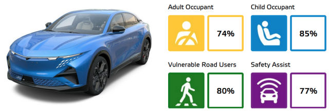 La faiblesse majeure concerne la protection des adultes, avec un score inférieur de plus de 11 points à la moyenne 2025. Là encore, il ne s’agit pas d’un problème global de structure, mais de charges trop élevées mesurées sur certaines zones du corps, notamment au niveau du thorax, traduisant une compatibilité de retenue perfectible.