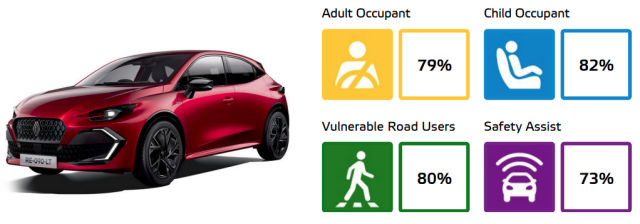Côté usagers vulnérables, la Clio affiche 80 %, avec une bonne protection du bassin, des genoux et des tibias. Les fémurs sont globalement bien pris en charge selon les zones d’impact. La principale faiblesse concerne la zone du pare-brise, notamment ses montants et sa base, où la protection d’un piéton ou d’un cycliste est jugée médiocre.