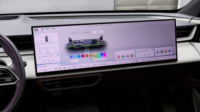Mazda met clairement l'accent sur la technologie à bord. La CX-6e adopte un immense écran central annoncé à 26 pouces, avec une définition élevée (5K). C'est spectaculaire. On ne peut pas dire le contraire.