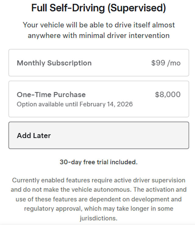 Tesla ne laisse désormais qu'une seule porte d'entrée vers ces fonctions : le Full Self-Driving, proposé uniquement sous forme de location mensuelle.