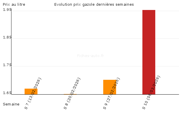 | Evolution prix gazole dernières semaines | |
