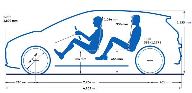 Comme l’ancienne ID.3, la Neo reste très bien placée sur l’espace à bord. Avec 4,265 m de long et surtout 2,766 m d’empattement, elle propose une habitabilité très convaincante pour une compacte.