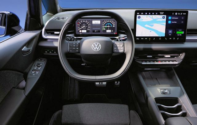 Volkswagen annonce trois puissances : 170 ch, 190 ch et 231 ch. Les batteries affichent 50, 58 et 79 kWh nets. La recharge atteint 11 kW en AC sur toute la gamme, 105 kW en DC sur les petites batteries, et jusqu’à 183 kW sur la grosse. Le 10 à 80 % est annoncé entre 26 et 29 minutes selon la version. L’autonomie va jusqu’à 417 km avec la 50 kWh, 494 km avec la 58 kWh et 630 km WLTP avec la 79 kWh.