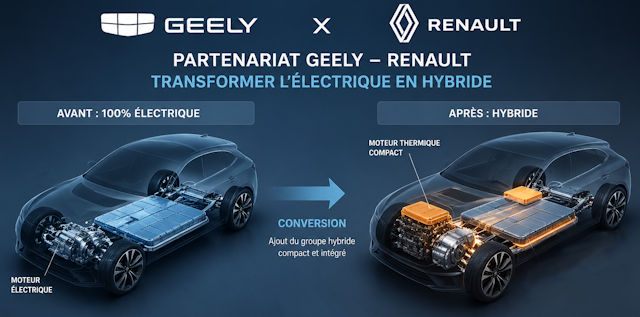 Comme vous le savez probablement, l'industrie automobile adore présenter ses virages comme des évidences absolues. Pendant plusieurs années, on nous a expliqué que la voiture électrique allait tout simplifier, car elle supprimait le moteur thermique, la boîte de vitesses, l'échappement, le réservoir, les vibrations et une bonne partie de la maintenance. Et voilà maintenant que Renault et Geely, via leur coentreprise Horse Powertrain, proposent de remettre un moteur thermique, une transmission hybride et un réservoir dans des voitures pensées au départ pour s'en passer. Avouons quand même que l'idée a quelque chose d'assez savoureux, car on revient ajouter de la mécanique là où l'on avait justement vendu la grande simplification. Il faut toutefois bien comprendre une chose dès le départ, ce système n'est pas destiné à rétrofiter des voitures électriques déjà vendues à des particuliers. On est ici dans du B to B pur, avec une solution vendue aux constructeurs pour leur permettre de décliner une plate-forme électrique en hybride, en hybride rechargeable ou en prolongateur d'autonomie.