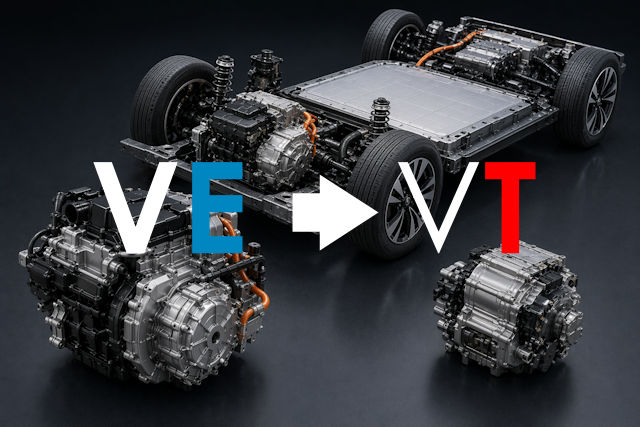 C'est probablement la question la plus logique à poser. Si l'on veut faire une hybride, une plate-forme thermique semble naturellement plus adaptée, car elle a déjà été pensée pour recevoir un moteur, une boîte, un échappement, un réservoir et une dépollution. Une plate-forme électrique, au contraire, est optimisée autour d'une batterie logée dans le plancher, de moteurs électriques compacts placés sur les essieux et d'un capot avant parfois très court. Remettre un moteur thermique dans cet espace demande donc des contorsions techniques assez sérieuses. On ne remplace pas un moteur électrique de quelques dizaines de centimètres par un quatre cylindres, une transmission, des supports moteur, une admission, un circuit de refroidissement, un échappement et des éléments de dépollution sans que cela pose quelques soucis d'intégration.