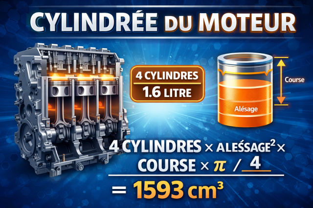 On multiplie ensuite ce volume par le nombre de cylindres pour obtenir la cylindrée totale du moteur.