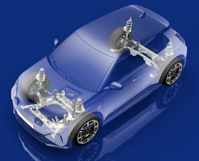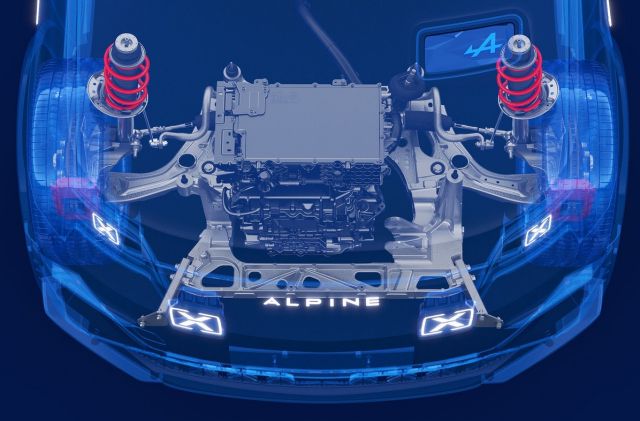 AmpR Small adopte un moteur électrique en position transversale avant, comme AmpR Medium, mais l’intégration est plus proche d’une base thermique convertie. Les supports, berceaux et renforts proviennent en grande partie de la CMF-B, ce qui explique la capacité de la plateforme à accueillir d’autres organes mécaniques si nécessaire. Sur la R5 Turbo 3E, 2 moteurs arrière ont été montés, sans transmission ni moteur à l’avant.