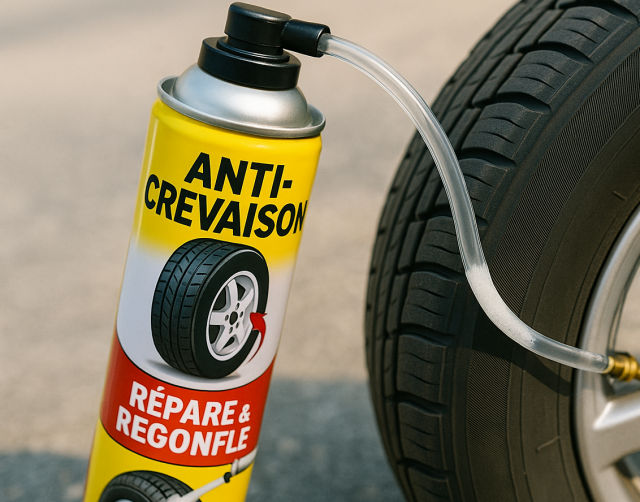 Cette solution convient surtout aux pneus avec chambre à air. Une bombe anti-crevaison contient un produit liquide qui, une fois injecté dans le pneu, se solidifie et bouche la fuite. L'opération ne prend que quelques minutes et permet de repartir sans avoir à démonter la roue. Le coût ? Environ 10 € la bombe, disponible dans tous les centres auto.