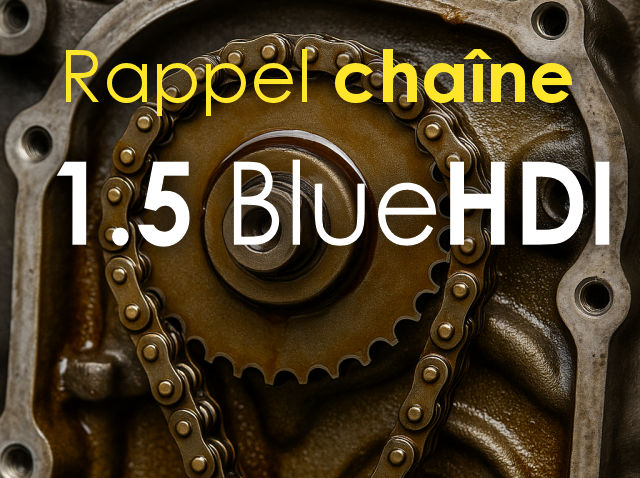 Le 1.5 BlueHDi (moteur DV5) est rappelé car sa chaîne d'arbre à cames de 7 mm ne tient pas toujours le choc dans le temps. La carbonisation de l'huile et la forte pression de contact sur la chaîne finissent par en réduire la résistance. Quand ça va trop loin, la chaîne peut se rompre, avec à la clé un arrêt brutal du moteur. Dans certaines situations, cette casse peut entraîner une perte de contrôle du véhicule et donc augmenter le risque d'accident et de blessures. Pour fiabiliser le moteur, la chaîne de 7 mm est remplacée par une nouvelle chaîne renforcée de 8 mm, plus adaptée aux contraintes du DV5.