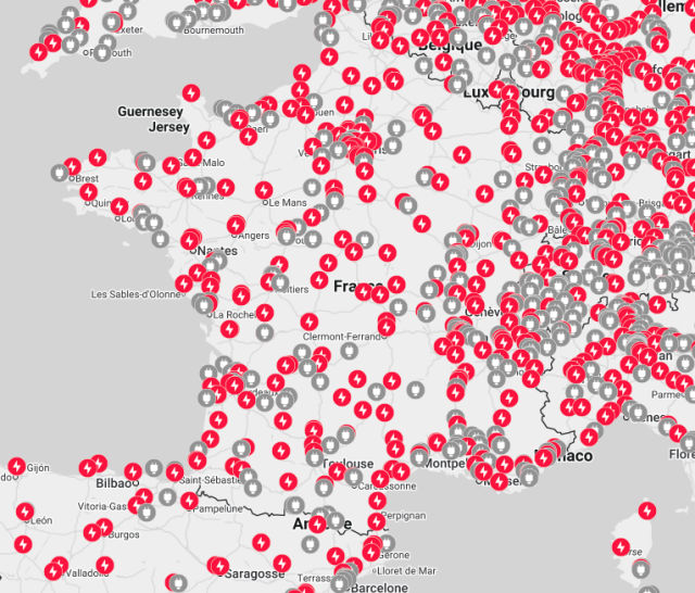 Si jamais vous vouliez faire le parallèle avec la carte des superchargeurs tesla ... La voici
