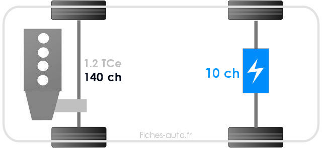 | 1.2 TCE 140 ch 3 cyl. | Batterie de 0.84 kWh + Moteur électrique de 10 ch (jusqu'à 34 ch potentiels) |