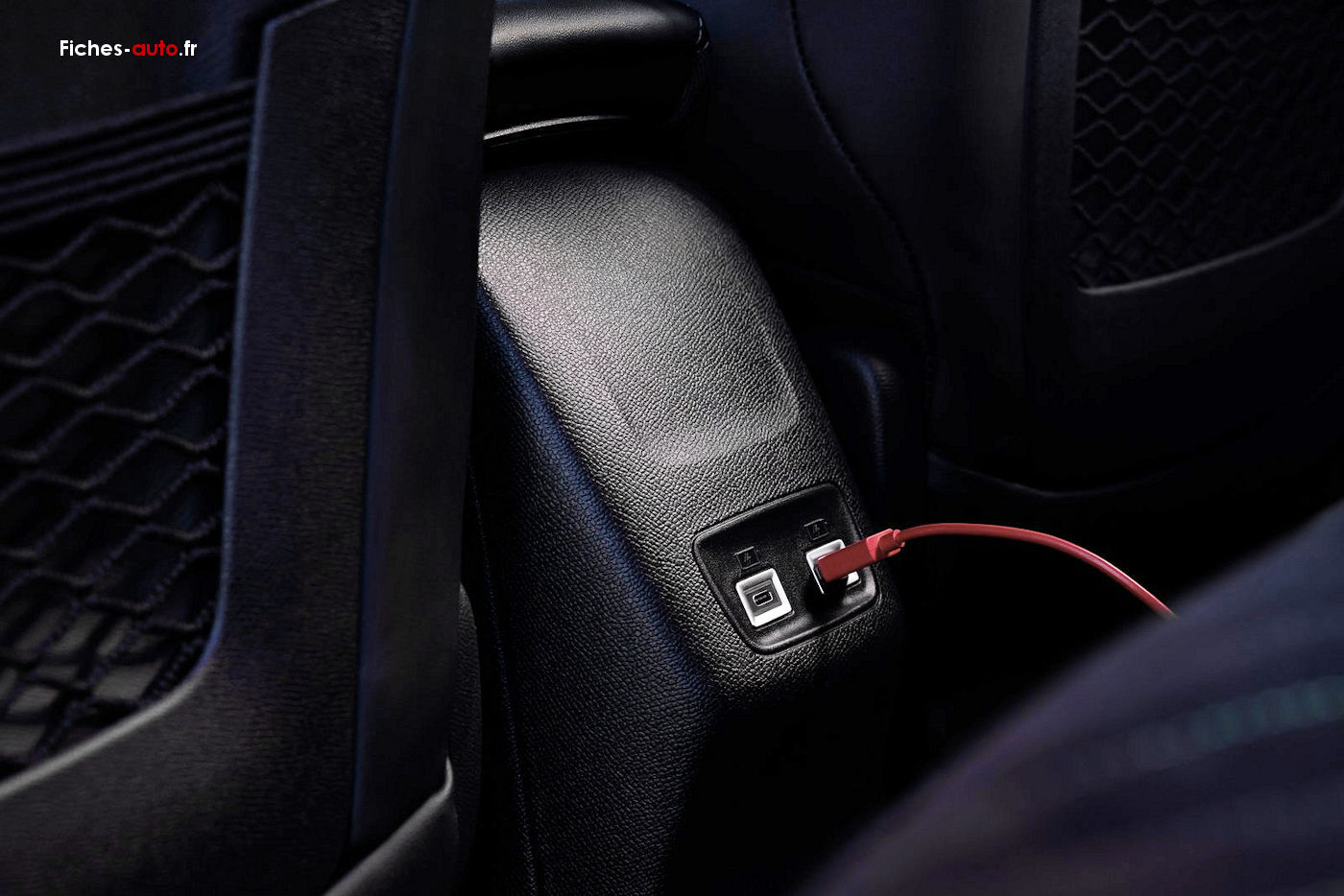 Prises USB : Les versions ALLURE et GT du nouveau 2008 sont équipées de 3 prises USB-C (deux à l'avant et une à l'arrière) ainsi qu'une prise USB-A à l'arrière. La version ACTIVE conserve une prise USB-C à l'avant, tandis que l'E-2008 ajoute une prise USB-C et une prise USB-A à l'arrière.