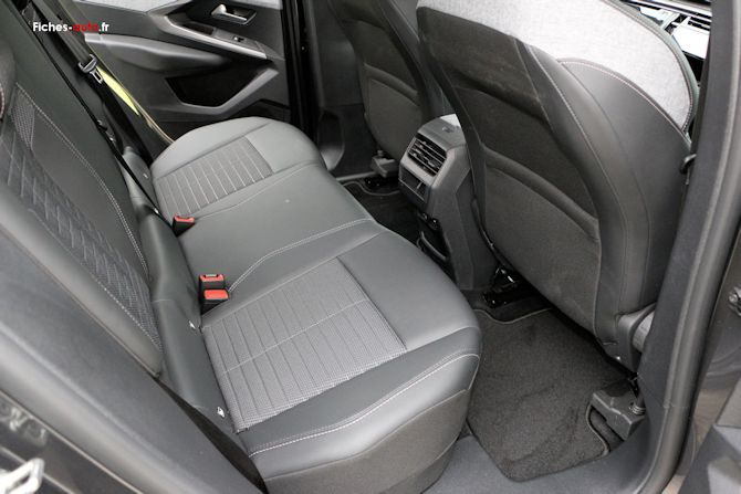 Commençons par le coffre qui s'établit toujours à 520 litres, une valeur qu'on peut estimer consistante et apte à gérer les familles (pas les trop grosses évidemment ...). Le deuxième rang s'avère plutôt bien, avec un espace qui n'est certes pas géant pour les jambes mais qui en même temps n'a rien de carencé. On est sur quelque chose de bien dosé, ni trop grand (même si ça n'est jamais trop grand ..) ni trop petit. Bien, évidemment, si vous avez des gènes de Scandinave va falloir aller voir ailleurs, mais l'offre reste limitée pour les voitures qui proposent un deuxième rang très généreux. La place centrale n'est pas trop pénalisée par un tunnel de servitude (pas trop car il y en a un mini qui amène un très léger relief) mais elle reste malgré tout peu confortable en raison d'un dossier grossier (qui sert avant tout d'accoudoir pour les passagers latéraux). Mais de toute manière circuler à 5 est assez rare pour la majorité des clients.