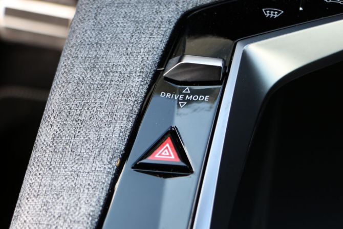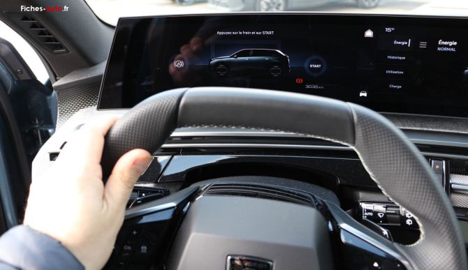 Peugeot moderne oblige, la direction est à la fois directe et très artificielle (sur-assistée même si on n'est pas non plus au niveau d'une Citroën), ce qui se révèle agréable dans un premier temps mais un peu plus handicapant quand on cherche à hausser le rythme et essayer de ressentir ce qu'il se passe au niveau du lien châssis / route (il y a bien le mode sport qui réduit un peu l'assistance mais niveau ressenti ça reste très jeux vidéo). L'autre constat est qu'on est ici perché très haut, ce qui permet de voir loin et d'avoir la sensation de dominer les autres, avec un sentiment de puissance et de domination.