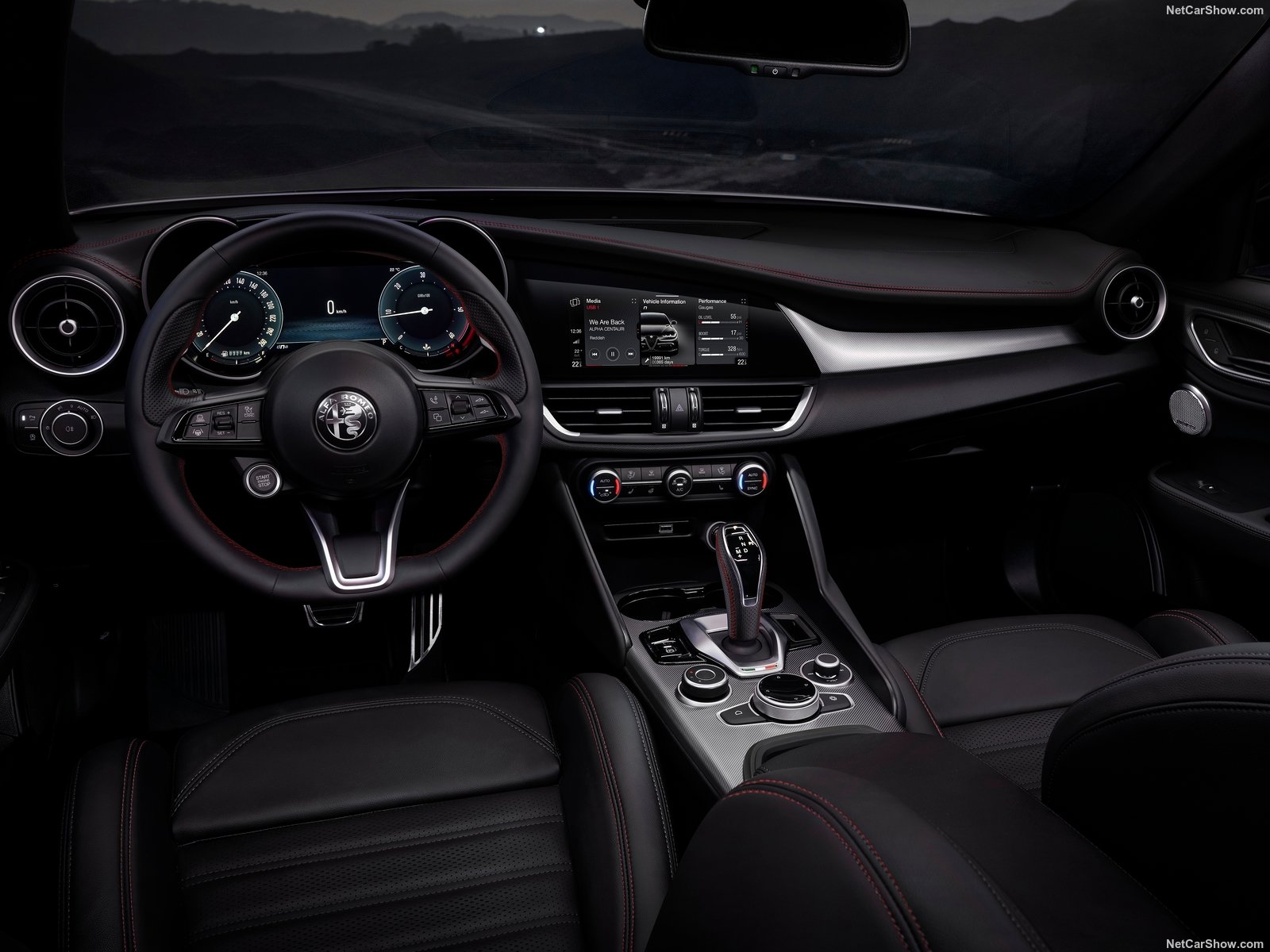 A partir de 79 000 euros : Alfa Active Aero Splitter // Alfa D N A Pro (Mode Race) // Alfa Active Suspensions // Alfa Chassis Domain Control // Système Navigation 3D 8,8” // Radio Numérique // Instrumentation Bord 7” // Phares Bi-Xénon 35W* directionnels // Lave-phares // Système de détection des angles morts // Radar de Parking avant // Caméra de recul avec lignes indicatrices // Rétroviseurs rabatables électriquement // Jantes en alliage 19” Leggera // Sortie d’échappement Quadrifoglio (4 sorties) // Étriers de freins noirs // Pare-chocs arrière sport // Dark-Line (inserts extérieurs noirs) // Grille avant Quadrifoglio // Sièges en Alcantara® et cuir // Moulures et détails intérieurs en fibre de carbone // Planche de bord avec cuir // Rétroviseur intérieur électrochromatique