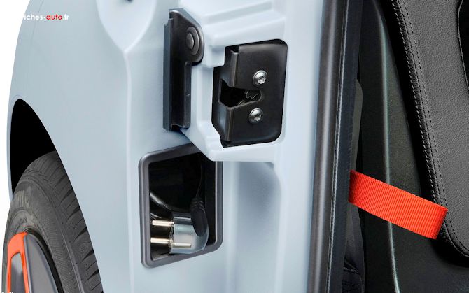La prise de charge se trouve dans un renfoncement situé dans l'ouverture de la porte passager, côté trottoir pour des raisons de logique.
