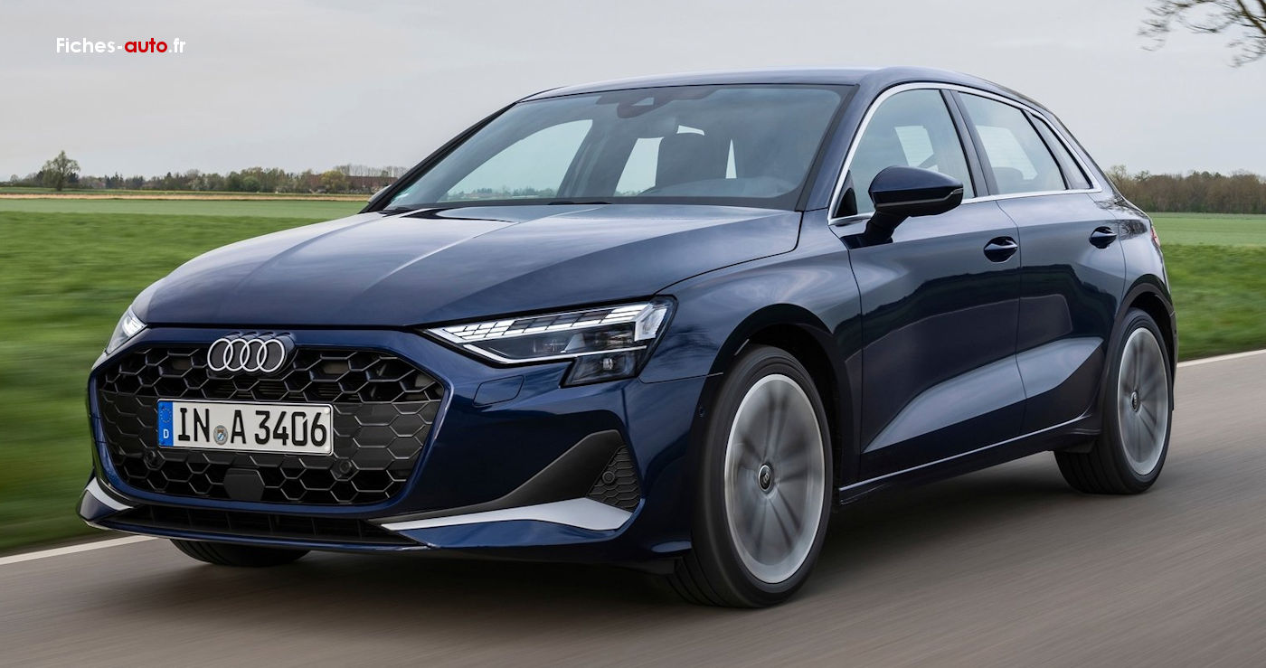 (Source Audi Juin 2021) A partir de 28 630 euros : Jantes en aluminium 16" // Sièges Tissu "Index" // Clé à fréquence radio // Climatiseur automatique confort 2 zones // Direction assistée électromécanique, asservie à la vitesse // Dossier de banquette arrière rabattable en 40:60 // Pare-brise à vitrage acoustique // Rétroviseurs extérieurs réglables électriquement et dégivrants // Sièges avant réglables manuellement (notamment hauteur) // 6 Haut-parleurs (passifs) // Combiné d’instruments numérique Digital Cockpit 10,25" // Interface Bluetooth // MMI Radio plus // Préparation pour appareil de navigation // Détecteur de pluie et de luminosité // Alerte de sortie de voie // Audi pre sense front // Contrôle de la pression de pneus // Dispositif de limitation de vitesse // Kit de réparation