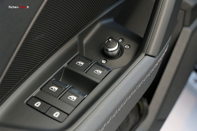 A partir de 31 780 euros : Pack Brillance extérieur // Pack Brillance extérieur // Pack Aluminium intérieur // Sellerie Tissu // Appui lombaire à 4 axes pour les sièges avant // 2 ports de charge USB à l’arrière // Audi smartphone interface // Audi phone box light // Caméra de recul // Audi park assist