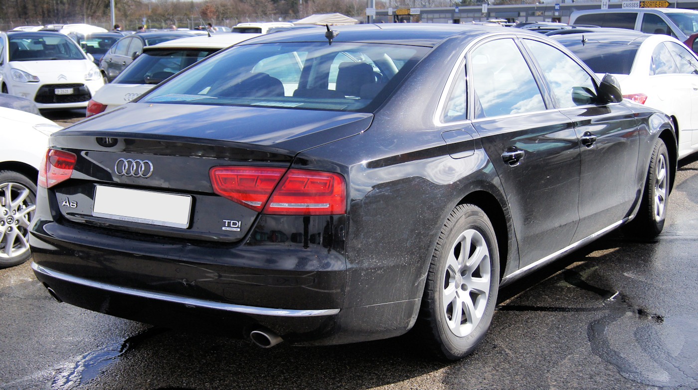Ma voiture principale, je m'en sers régulièrement pour aller au travail 2 à 3 fois par semaine. Et ce sont des trajets de 100 km (donc 200 l'aller-retour), avec autoroute (allemande (; ).Je précise que j'ai une version phase 1, 3.0 TDI 250 et non 258. Les 258 et 262 sont les 3.0 TDI des phases 2 qui viennent accueillir l'Adblue. Parmi ces qualités, • Réservoir de 90 litres sur la phase 1 (de 82 litres sur les phases 2 de 2013+ avec l'Adblue) que c'est génial pour l'autonomie avec un 3.0 L TDI ! Bon, on ne va pas non plus battre des records (type ceux des Passat B7 1.6 TDI avec 70 litres de réservoir), mais c'est sincèrement très bon parce qu'on a aussi un certain agrément de conduite proposé avec le 6 cylindres, le quattro et la Tiptronic à 8 rapports. Avec une moyenne mixte de l'ordre de 7.3L/100 (dans mon cas), on peut effectuer 1100 km avant que la réserve ne s'allume. Et 1000 avant de songer même à devoir faire le plein.Dans des conditions favorables, type retour de vacances en roulant quasi exclusivement sur l'autoroute (130 km/h donc à environ 1700 tours), la moyenne affichée était de 6.5 litres aux 100. Après environ 900 km de trajet, il restait encore 450km d'autonomie calculée sur l'ODB, appréciable ! • Compromis intéressant entre confort et dynamisme Les sièges avec un certain moelleux et les suspensions pneumatiques apportent un très bon niveau de confort. On ressent cela dit tout de même les montes, dans mon cas, de 20 pouces au moment de franchir une bordure ou sur certains dos d'ânes. Ce n'est pas aussi douillet certainement qu'une Classe S.Mais en contrepartie, la voiture reste assez dynamique, tout du moins pas trop à la ramasse sur petites routes. A côté de cette A8 j'ai aussi une Laguna 3 qui a aussi visé le compromis entre les deux, confort/dynamisme. Il y a un très net écart sur le confort (amortissement comme confort d'assise, à savoir le moelleux des sièges proposés par l'A8) entre les deux. Niveau comportement, l'A8 ne peut pas faire oublier ses 400 kg supplémentaires, forcément, mais encore une fois, elle n'est pas à la ramasse.Sur autoroute allemande, elle est imperturbable à haute vitesse.Avec sa direction plutôt précise, l'agrément de conduite est globalement très bon.• S'agissant de la masse justement, 1840 kg à vide, c'est finalement très correct pour une berline de 5m14 avec 4 roues motrices et un 3.0 litres diesel. C'est plus léger de quelques dizaines qu'un Q5 3.0 TDI Quattro de ces années, une Classe E W212 350 CDI 4Matic ou même une F10 530d xDrive par exemple. • Fiabilité :pour le moment ça me semble bon. J'ai déjà fait 43'000 km avec, en 1 an et demi de possession (de 107 à 150k km), et eu un capteur de pression de suralimentation à changer (toutefois pas forcément simple à diagnostiquer).De mes attentes, le 3.0 TDI, le système quattro et la Tiptronic sont fiables.L'A8, contrairement aux A6 et A7, présente la particularité d'associer systématiquement la Tiptronic à ses motorisations plutôt que la S-Tronic (hors BiTDI des A6/A7), ce qui est de mon point de vue, et sur ce point à savoir la durabilité, un atout.• Plutôt performante au final, notamment je pense grâce à sa masse contenue et la Tiptronic finalement rapide dans ses passages. 6.5 sec le 0 à 100. Le 80 à 120 est effectué en 4 secondes, parfaitement comparable là-dessus avec une 530d.• Relativement sobre, peut-être pas autant qu'une BMW avec un 30d, mais il est possible de faire des consos assez basses sans trop se priver. A condition de faire généralement des trajets assez longs (au moins 30/40 km) et sans accélérer/freiner inutilement.• Une présentation intérieure qui lui est propre, qui ressemble à aucune autre Audi, si ce n'est la version précédente de l'A8. • Sonorité un peu agricole au démarrage mais plutôt agréable dans les tours avec ce 3.0 TDI et au ralenti.• Et bien entendu, toutes les autres qualités propres à une voiture de ce segment le bon espace à bord (mais... voir la section défaut), très bonne insonorisation (la mienne a un double vitrage), les matériaux et la qualité de finition de bon voire très bon niveau (allez donc chercher le moindre bruit parasite... jamais), des équipements hdg (soft-close, stores électriques) dont certains en série (réglages électriques des sièges avants y compris de l'appuie-tête, suspensions pneumatiques, toit ouvrant me semble-t-il aussi).Défauts Comme ses concurrentes, les principaux "défauts" de cette voiture se résument à ceux de sa catégorie, il n'y a donc aucune surprise là-dedans mais il faut en être conscient - Chère et contraignante à assurer. Des assurances peuvent exiger un bonus minimum à avoir (on m'avait demandé d'être à 0.62 soit 38%, qui m'a valu un refus de mon expérience). - Chère (voire potentiellement très chère) à entretenir. Avoir un bon contact garagiste, ou savoir faire les choses soi-même peut vite s'avérer nécessaire. Donc en ce qui me concerne, je suis content d'avoir un bon contact garagiste ( - Assez mauvais rapport encombrement/praticité, même pour moi qui a l'habitude des berlines. 5m14 de long en empattement standard, 1m95 de large hors rétros, ça prend de la place partout. Et c'est une berline à malle, avec des sièges non rabattables. 510 litres de coffre, c'est acceptable dans l'absolu mais plus petit que la malle d'une A6. Et malle oblige, attention aux valises rigides et aux gros volumes en général. Sur les phases 2 le réservoir d'Adblue vient grignoter le volume de coffre, à la baisse (482 L). Après ces quelques évidences, je retiendrai sinon ces quelques (3.0 TDI 258 ch A8 Phase 1 - 2012)