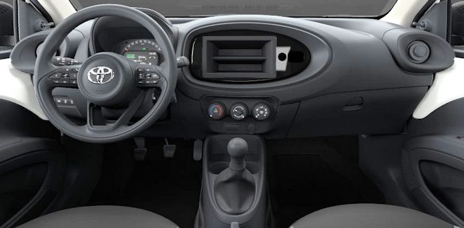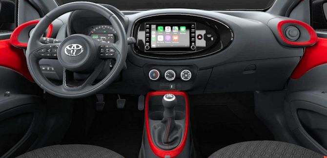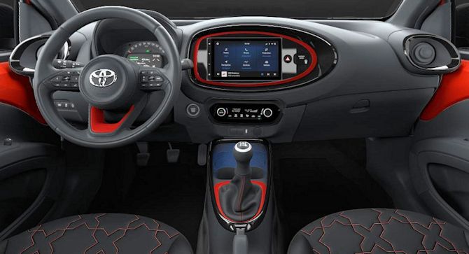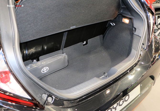 Pas facile de concilier économies maximales et habitacle cossu ... Toyota n'étant en plus pas le champion de la qualité dans les habitacles (à croire qu'ils ont des gènes américains), il ne fallait donc pas trop en espérer ici. Le résultat est donc une auto aux plastiques durs et gris qui inspirent un peu la grisaille et le bourdon (avec des assemblages très bons si on omet la boîte à gants) . Et si il y a eu une tentative d'égayer le tout avec des formes rondes (qui peuvent rappeler la première Yaris sous certains aspects) et quelques pointes de couleur sur les versions les plus dotées, on ne sera pas vraiment emballé. A une époque où les concurrents sont de plus en plus astucieux pour offrir des habitacles funs et rigolos, on pourra voir ici un manque d'inspiration. Mais ne soyons pas trop mauvaise langue, car cet intérieur est à la fois ergonomie et fonctionnel, ce qui est finalement le plus important dans une voiture du quotidien (et puis à ce niveau de gamme les concurrents ne font pas non plus trop de folies non plus). On a en effet des commandes bien positionnées et qui ont le mérite d'être encore physiques et non tactiles. Toyota étant un gros fournisseur d'autos pour les personnes un peu plus âgées, ils ont évité l'erreur de proposer une ergonomie trop "numérique".
