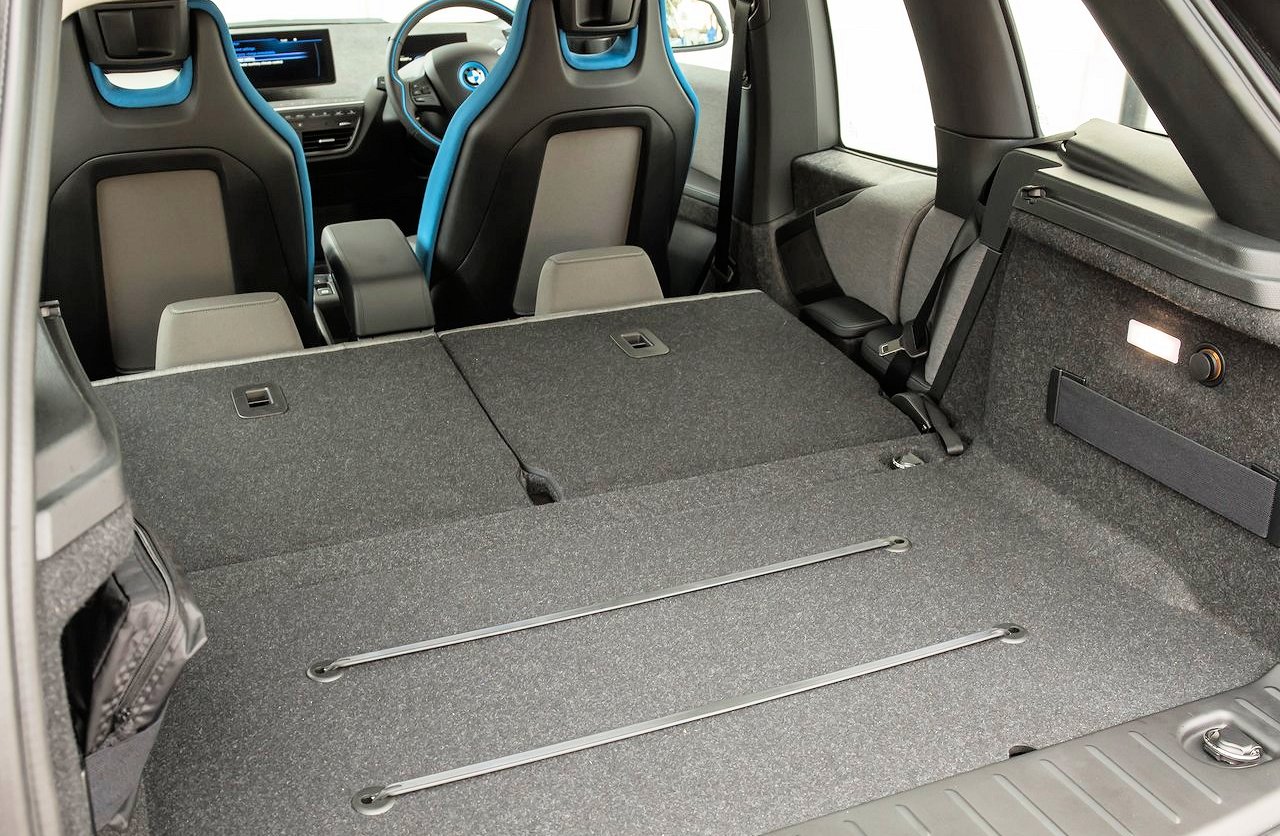 L'i3 est plus une voiture pragmatique que passionnelle, commençons donc par les aspects les plus rationnels. Le volume de coffre est de 225 litres à l'arrière et 35 litres à l'avant, c'est à dire qu'il est vraiment très limité pour une voiture de quatre mètres, soyons honnête ! Heureusement, la modularité est très bonne en offrant une banquette rabattable en deux parties ainsi qu'un plancher plat une fois réalisé. En cas de grosses courses, vous pourrez toujours rabattre l'un des deux sièges si vous avez un enfant à transporter en même temps. Sachez qu'une fois la banquette rabattue entièrement, l'espace disponible est de 1100 litres (la forme bien rectangulaire rend facile les chargements).