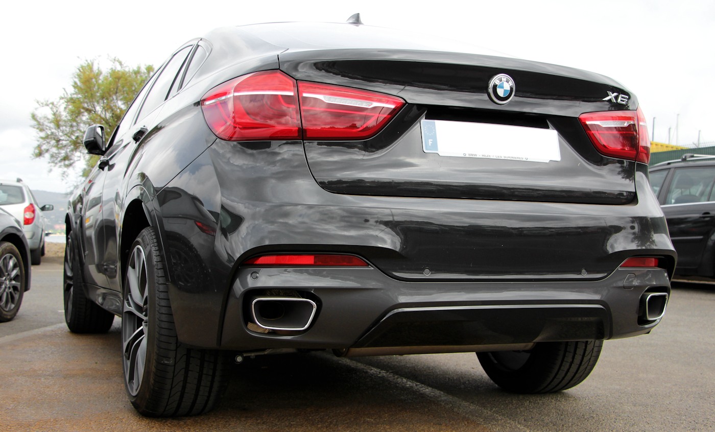 A partir de 103 700 euros : (Avec moteur M50d uniquement) Badge M situé sur les ailes avant / Clé radiocommandée avec les couleurs M sur le flanc / Coques de rétroviseurs extérieurs en teinte "Ferricgrau" / Entrées d'air latérales spécifiques de la jupe avant avec lames décoratives "Ferricgrau" à gauche et à droite / Grilles de calandre avec barreaux couleur titane et encadrement chromé / Inscription arrière "X6 M50d" en chrome foncé / Jantes en alliage léger 20" (51 cm) style 468 M à rayons doubles / Kit carrosserie spécifique M entièrement peint / Sortie d'échappement trapézoïdale de chaque côté en chrome foncé / Shadow Line brillant / Ciel de pavillon anthracite / Combiné d'instrumentation avec désignation "M50d" / Inserts décoratifs en aluminium "Hexagon" / Planche de bord et hauts de contre-portes garnis de cuir / Repose-pied en aluminium / Sélecteur de boîte de vitesses avec logo "M" / Sellerie cuir Dakota/alcantara anthracite / Seuils de portes avant avec désignation "M50d" / Sièges Advanced pour conducteur et passager avant au design spécifique avec réglage manuel de la longueur d'assise (voir détails p.25) / Sièges avant avec appui lombaire ajustable électriquement / Volant M gainé cuir avec palettes de changement de rapport / Connectivité avancée (voir détails p.28) / Direction Servotronic M avec réglages spécifiques / Pack Dynamic Drive (suspension antiroulis active "Dynamic Drive" et Contrôle Dynamique de la Transmission avec accélération vectorielle de la roue arrière extérieure au virage pour un dynamisme maximal et une stabilité optimale) / Pack Suspension Adaptative (Amortissement variable piloté et suspension arrière avec correcteur d'assiette automatique à réglages spécifiques) / Pack Advanced Full LED avec projecteurs directionnels, feux de route permanents anti-éblouissement "BMW Selective Beam" et projecteurs antibrouillard à LED (voir détails p.18) / Système Hi-Fi Harman Kardon avec amplificateur numérique de 600 W et 16 haut-parleurs